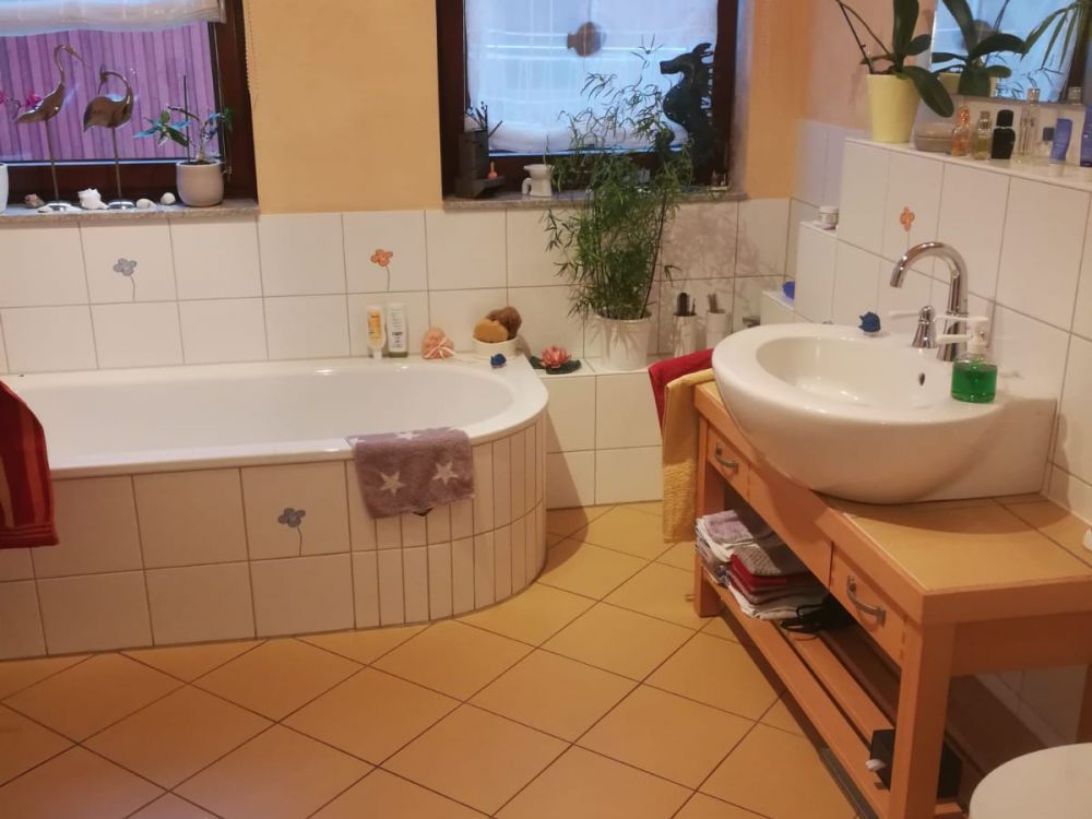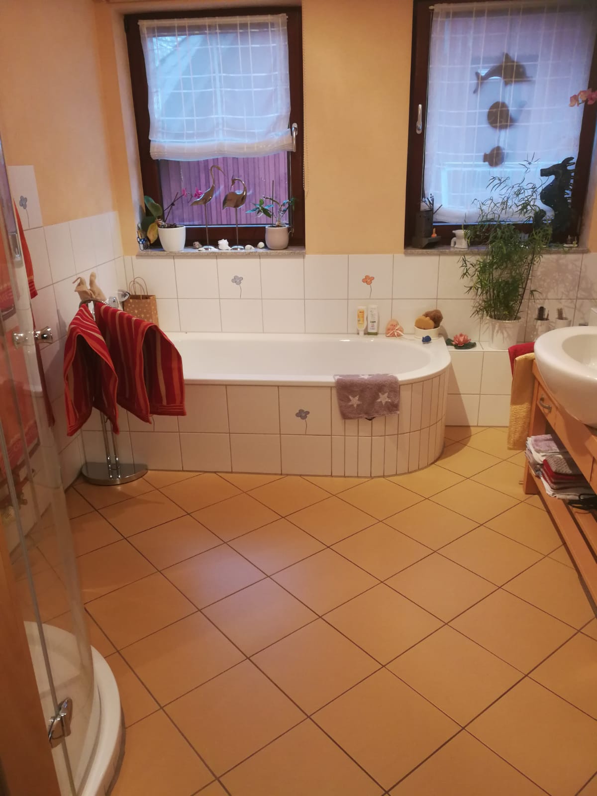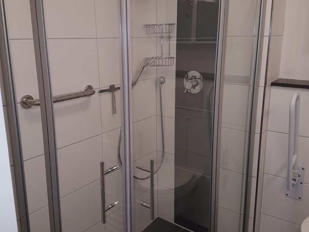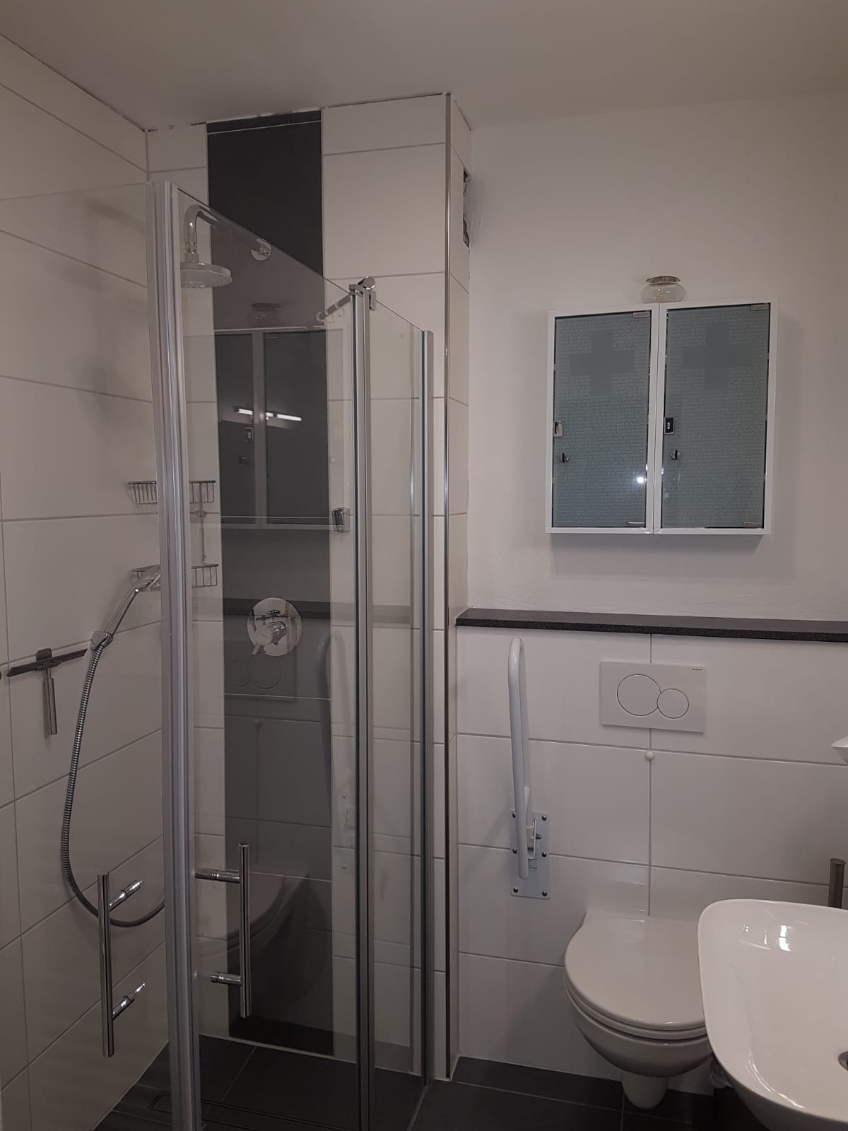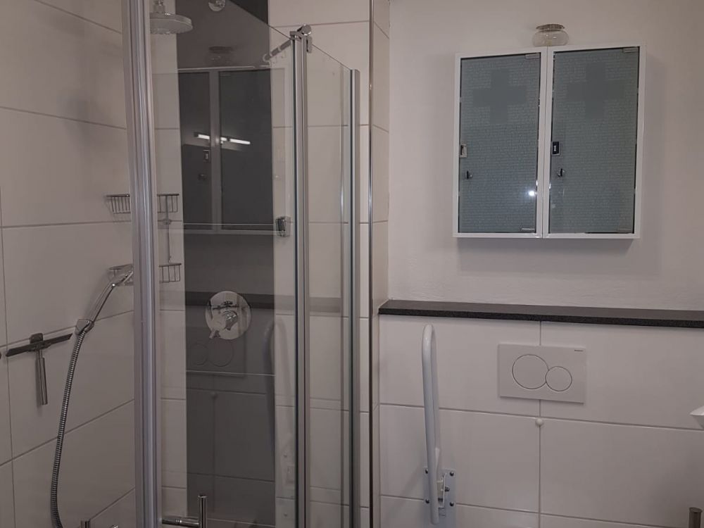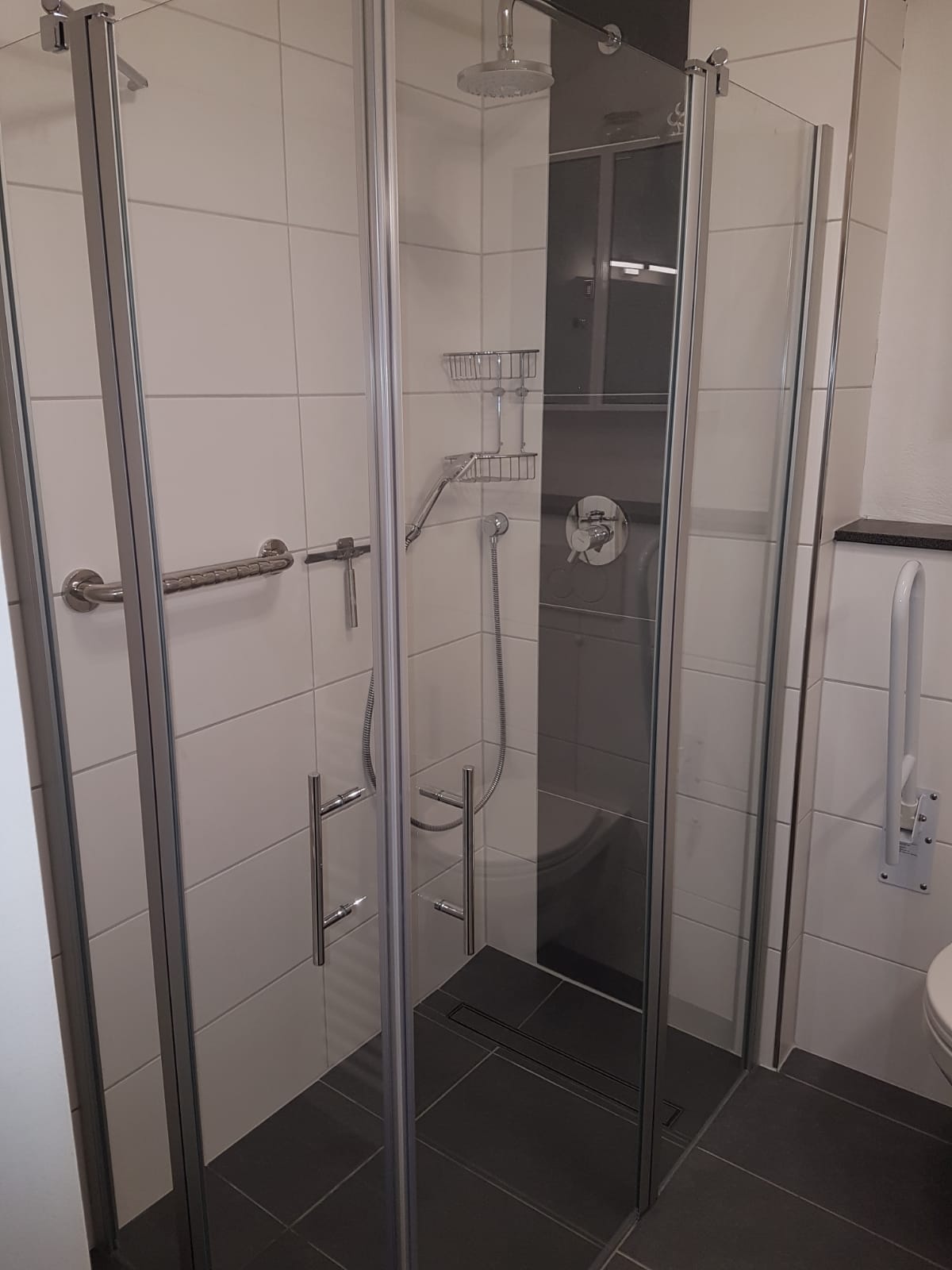 Aufgrund des Alters und leichten Einschränkungen der Bewohner wurde das Badezimmer so umgebaut, dass alle Installationen barrierefrei begeh- und benutzbar sind.