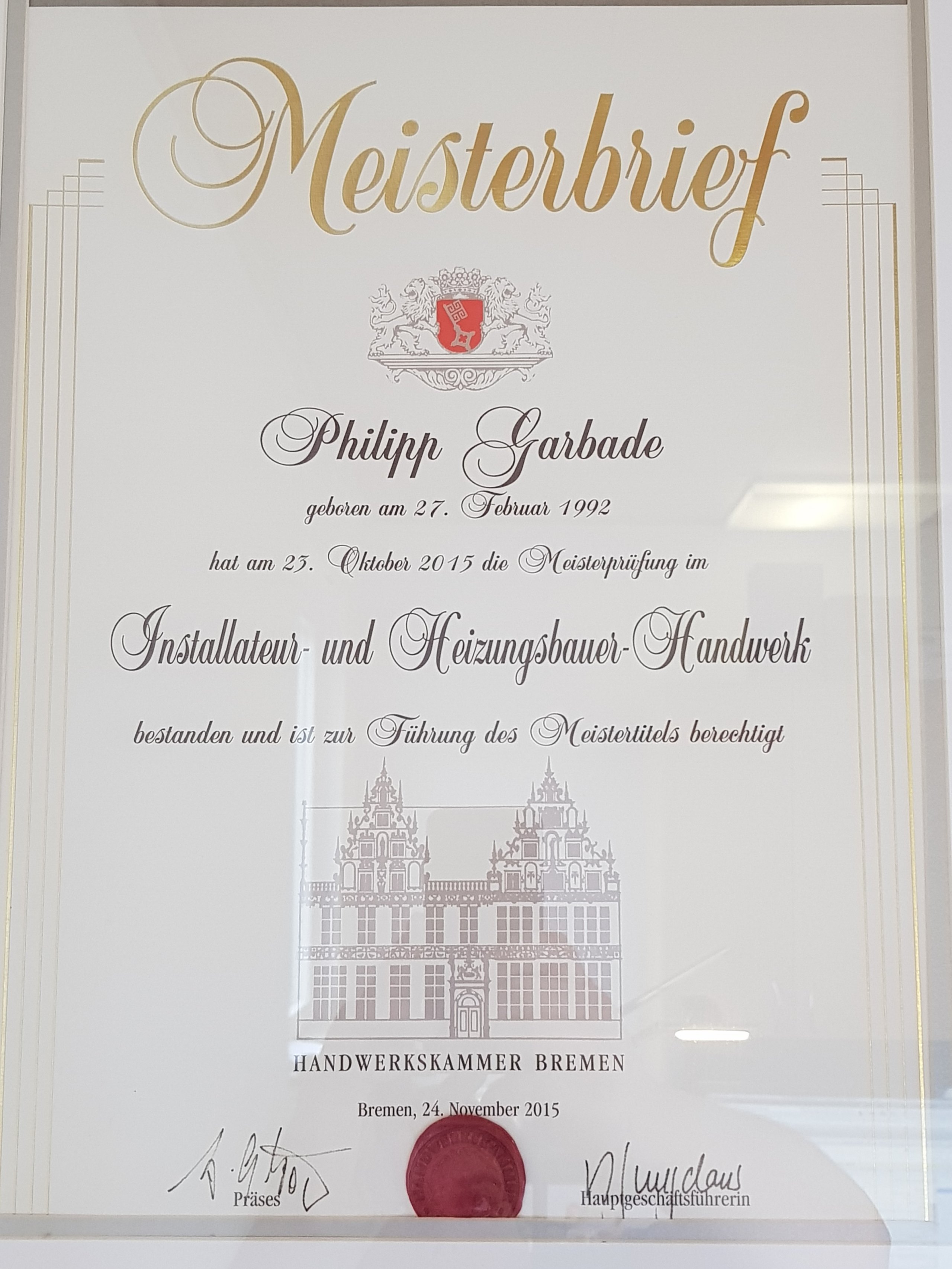 Nach der Übergabe von Michael Garbade an seinen Sohn Philipp, einen Installateur und Heizungsbauer-Meister, im Jahre 2017 werden zunehmend Modernisierungen realisiert. So ersetzt ein neues Firmengrundstück das zuvor überfüllte Lager und auch die erste Homepage hält im Jahr 2019 Einzug. Nun stehen wir dort, wo wir stehen wollen: Jederzeit bereit, Ihnen Lösungen im Bereich Heizung und Sanitär aufzuzeigen. Denn dafür steht das Unternehmen Garbade Heizung Sanitär: Für Qualität & Leidenschaft - seit 100 Jahren im Dienste des Kunden!